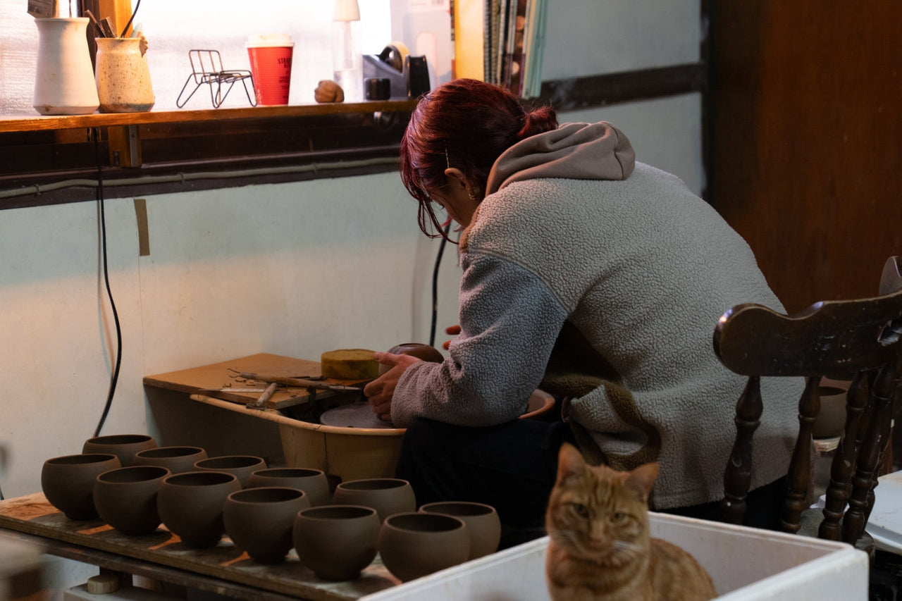 工房では、B'zや藤井風の音色、そして何度も見返したお気に入りのドラマを流しながら、一人きりの世界で土と向き合います。